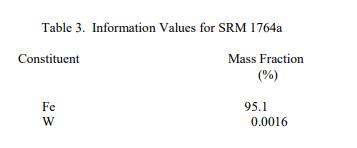 表 3 中報告了兩種成分的信息值。信息值被認為是對 SRM 用戶有用的值,但沒有足夠的信息來評估與值相關的不確定性 [2]。