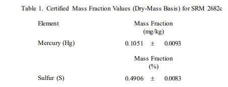 表 1 中提供了汞和硫的認(rèn)證值,以基于干質(zhì)量的質(zhì)量分?jǐn)?shù) [1] 表示。NIST 認(rèn)證值是 NIST 對(duì)其準(zhǔn)確性有最高置信度的值所有已知或可疑的偏差來(lái)源都已被調(diào)查或考慮 [2]。認(rèn)證值是對(duì)真實(shí)值的當(dāng)前最佳估計(jì)。